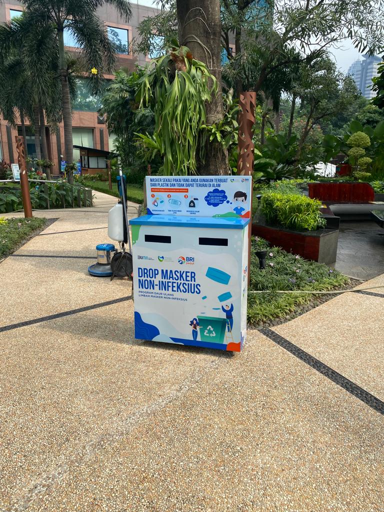 Tidak dipungkiri masa Pandemi Covid-19 memunculkan permasalahan baru yaitu sampah masker non-infeksius. Tingginya pemakaian masker menghasilkan sampah masker yang tinggi pula, sedangkan masih sangat sedikit pihak yang dapat mengolah sampah masker ini menjadi barang daur ulang. Apabila tidak ditangani dengan benar, limbah masker ini akan menimbulkan permasalahan tersendiri dikemudian hari. Menyikapi kondisi tersebut, BRI berkolaborasi dengan Yayasan Upakara Bhuvana Nusantara. Yayasan ini nantinya yang akan mendaur ulang sampah masker menjadi pot tanaman yang bernilai ekonomis. Dalam program ini, BRI memberikan bantuan kepada yayasan berupa mobil pengangkut sampah masker, drop box masker dan alat sterilisasi sampah masker. Bantuan ini merupakan salah satu upaya BRI dalam menjaga kelestarian lingkungan.